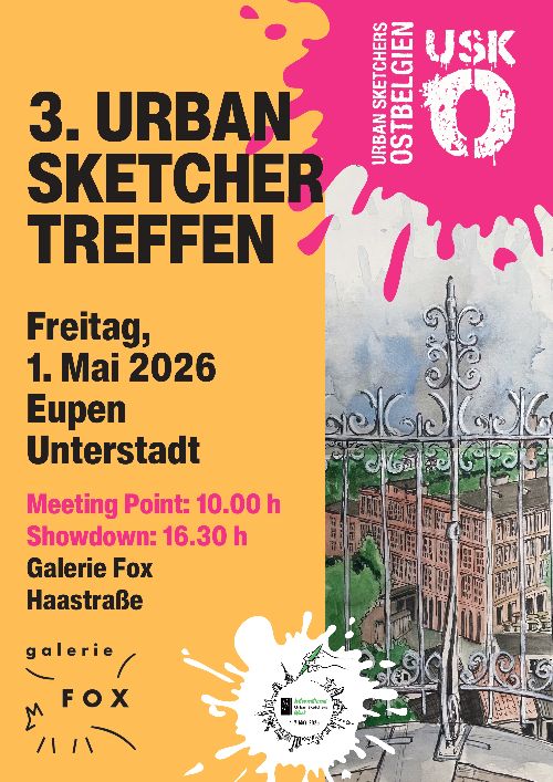 Op vrijdag 1 mei nodigen de Urban Sketchers Oostbelgië u uit voor een bijeenkomst in de benedenstad van Eupen. Talrijke gasten zullen aanwezig zijn om de architectonische bijzonderheden van dit voormalige centrum van de textielindustrie ter plaatse te tekenen.